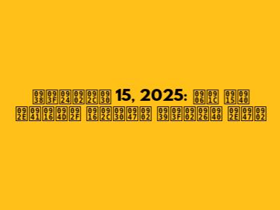 नमस्ते दोस्तों! कैसे हैं आप सब? आज हम आपके लिए लाए हैं 15 सितंबर, 2025 की ताज़ा और सबसे महत्वपूर्ण खबरें। तो चलिए, बिना किसी देरी के शुरू करते हैं!
