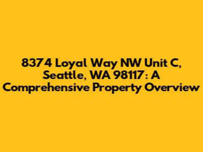 Hey there, property enthusiasts! Let's dive deep into the details of 8374 Loyal Way NW Unit C, Seattle, WA 98117. This isn't just a random address; it's a potential home, investment, or maybe just a point of curiosity. We're going to break down everything from its location and neighborhood vibes to potential property values and what makes this spot tick. So, grab your coffee, and let's get started on this exciting property exploration. We'll uncover the secrets of this specific unit and the broader context of the Seattle real estate market. This analysis aims to give you a clear picture, whether you're a seasoned investor, a first-time homebuyer, or simply someone who loves to know the lay of the land. We'll explore the immediate surroundings, assess the pros and cons of the location, and consider factors that might influence its value. Ready to see what makes this property tick?