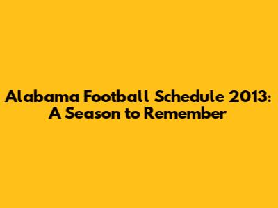 Alabama Football Schedule 2013: A Season To Remember