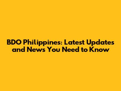 BDO Philippines: Latest Updates And News You Need To Know