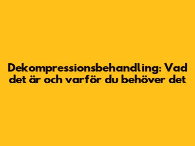 Dekompressionsbehandling: Vad Det Är Och Varför Du Behöver Det