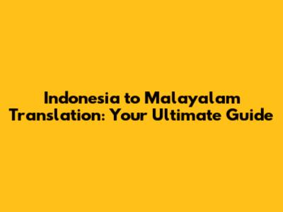 Indonesia To Malayalam Translation: Your Ultimate Guide