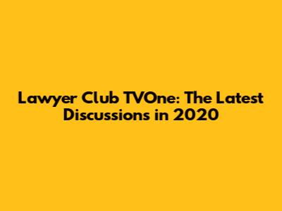 The Impact and Relevance of Lawyer Club TVOne in 2020