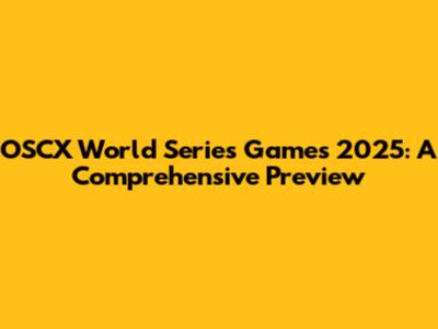 OSCX World Series Games 2025: What To Expect